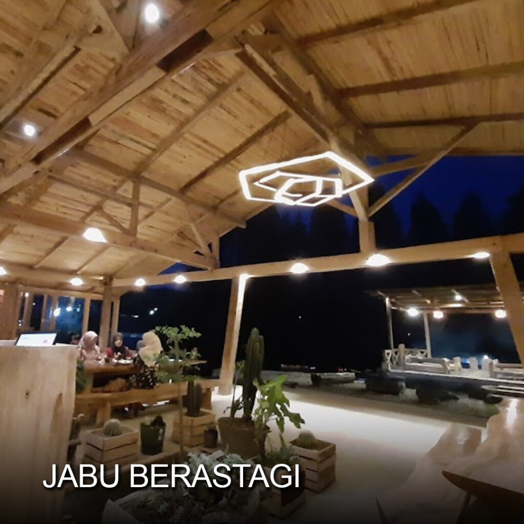 “Jabu Berastagi, terletak di Jalan Gundaling, Kabupaten Karo yang menawarkan pengalaman kuliner yang unik di tengah sejuknya udara pegunungan Berastagi. Dengan luas lahan 1,6 hektar, kafe ini mengusung konsep heritage dan story telling yang terlihat dari dekorasi berbahan kayu serta furnitur yang unik, termasuk jendela-jendela yang diambil dari rumah-rumah terdampak erupsi Gunung Sinabung. Konsep natural klasik yang diadopsi membuat Jabu terasa menyatu dengan alam. Menyajikan beragam menu dari masakan Jepang, Nusantara, hingga Western, ciri khas kafe ini adalah “”sate satu meter”” yang menjadi favorit pengunjung.